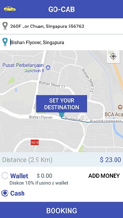 Specify pick-up and delivery points. Go-Taxi will estimate the service Cost for you.
